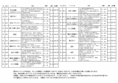 夏休みのご予定と合わせて、イベントの方にもぜひ、ご参加をお待ちしております!