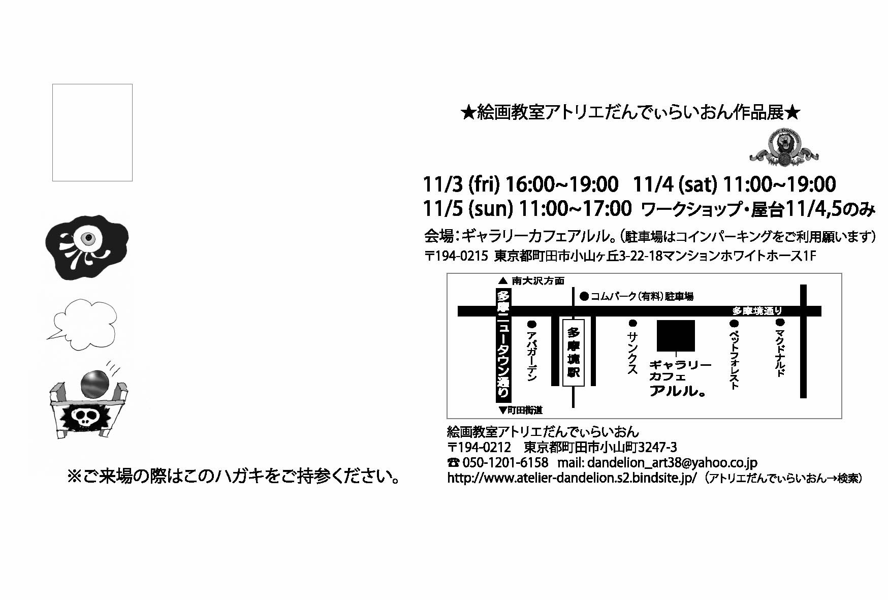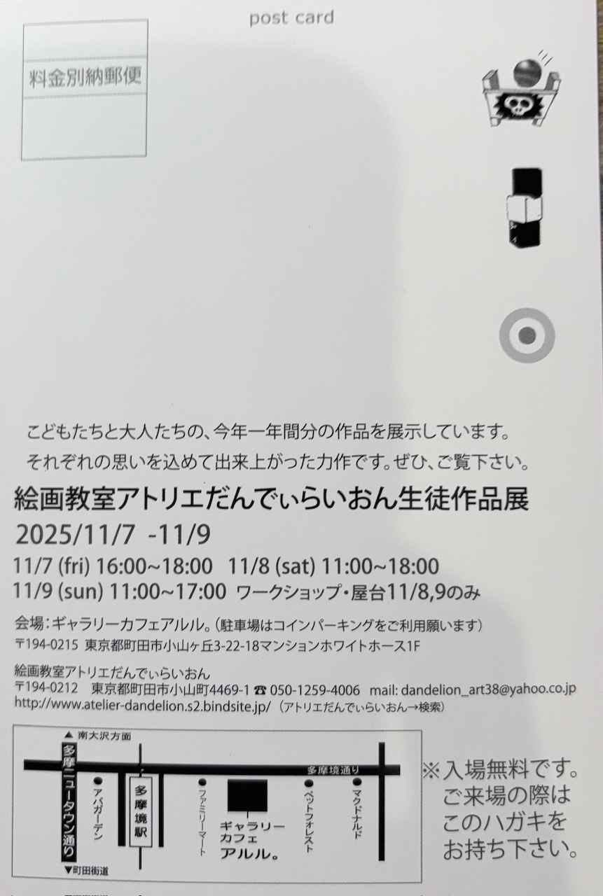 ※10月または11月の月謝にて、作品展協力費1,000円(お一人当たり)のお願いを